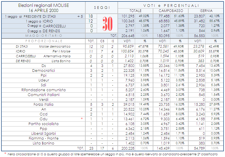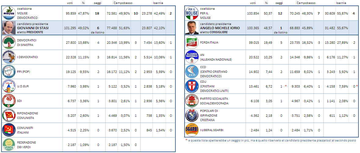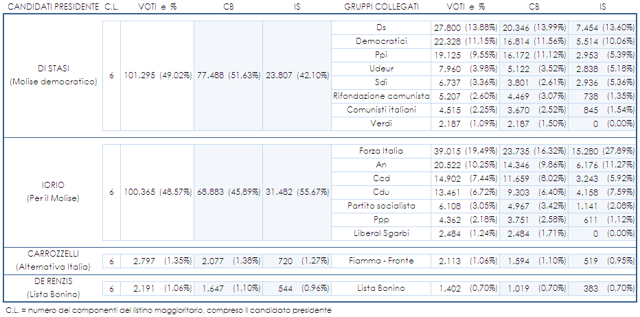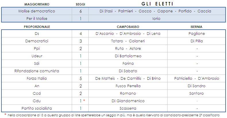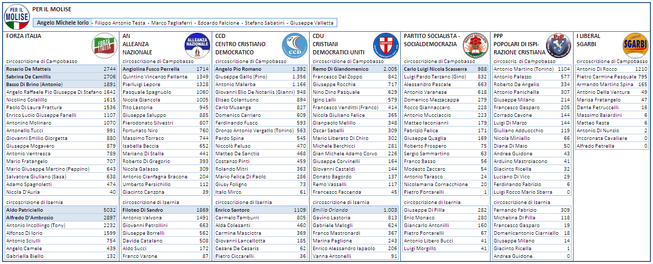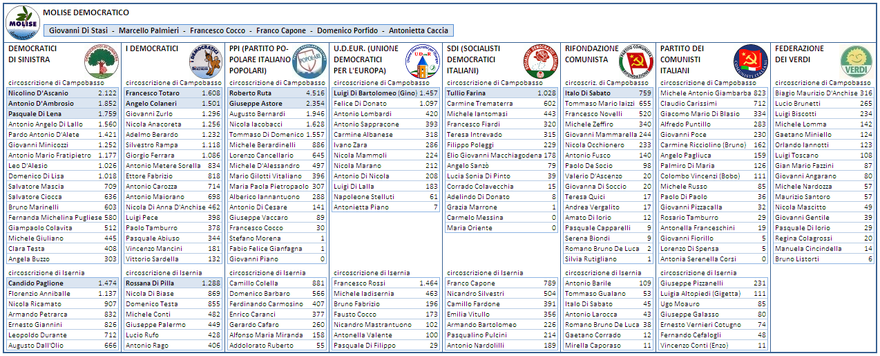 Molise democratico Per il Molise Ds Democratici Ppi Udeur Sdi Rifondazione comunista Forza Italia An Ccd Cdu Partito socialista